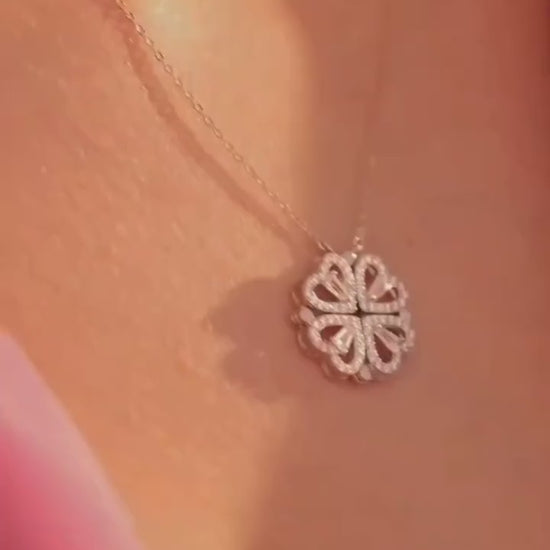 Hyacinth 4-pcs Zircon Heart Magnetic Clover Necklace - Rose Gold