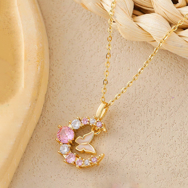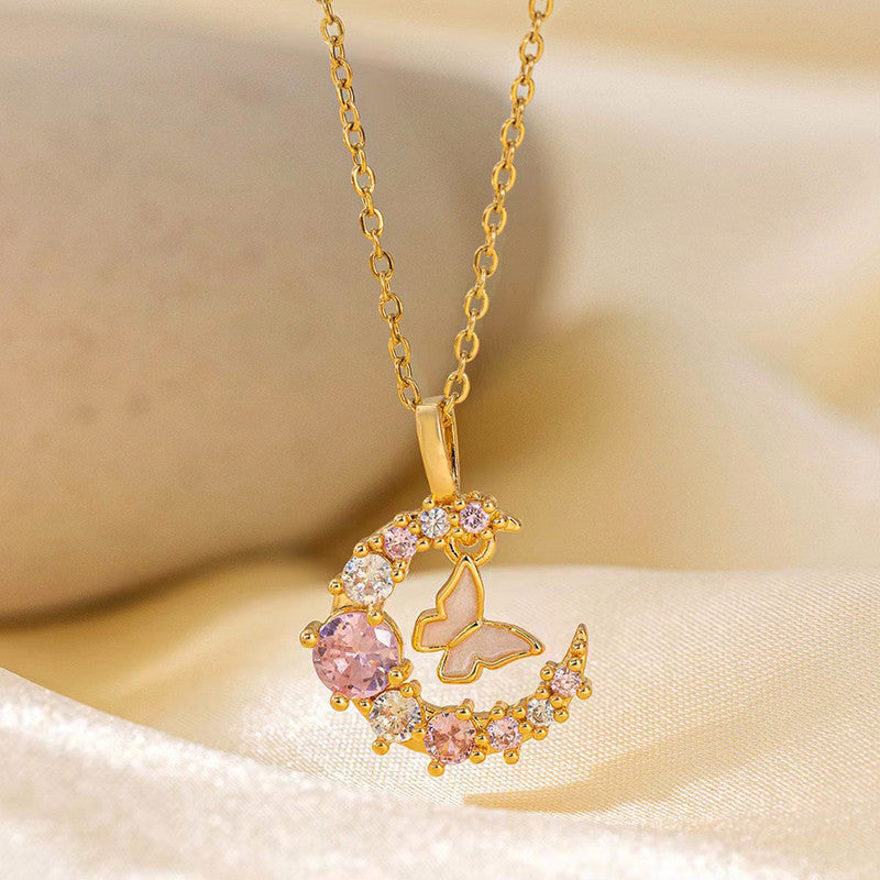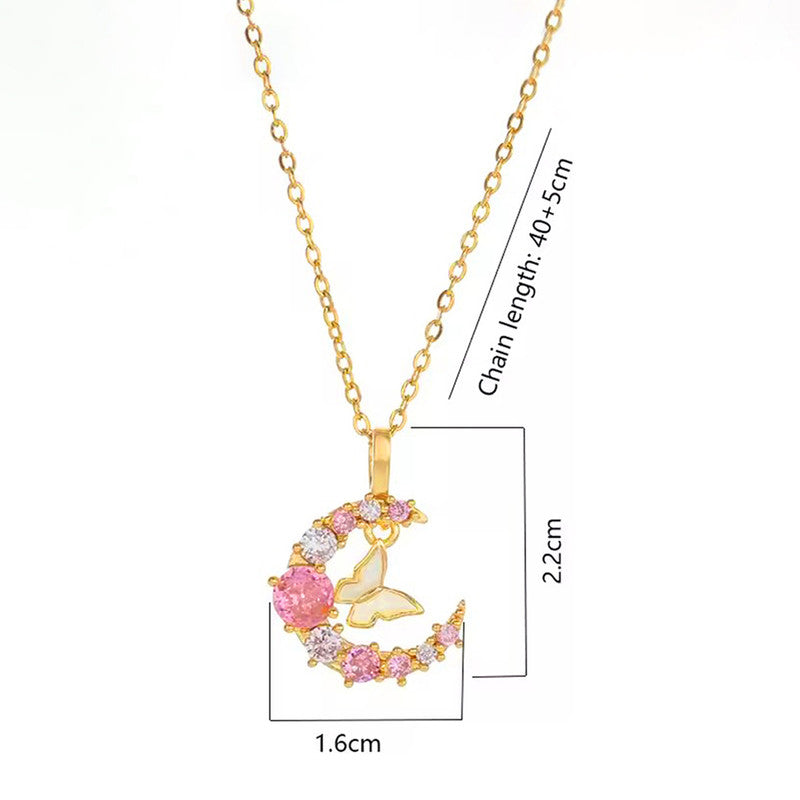 Embrace elegance and symbolism with this stunning Butterfly-Moon Pendant, beautifully crafted from premium stainless steel for lasting shine and durability. The delicate butterfly design represents transformation and freedom, while the crescent moon embodies femininity, mystery, and new beginnings.